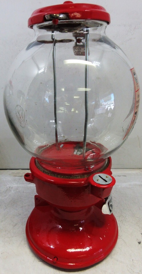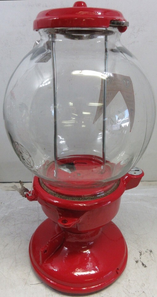 A one cent coin operated peanut dispenser (can also be used as a candy dispenser) with the original glass globe.