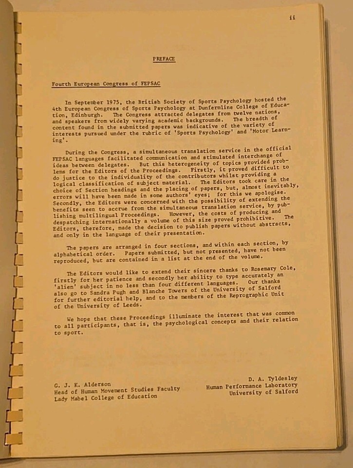 British Proceedings Of Sports Psychology FEPSAC Congress 1975