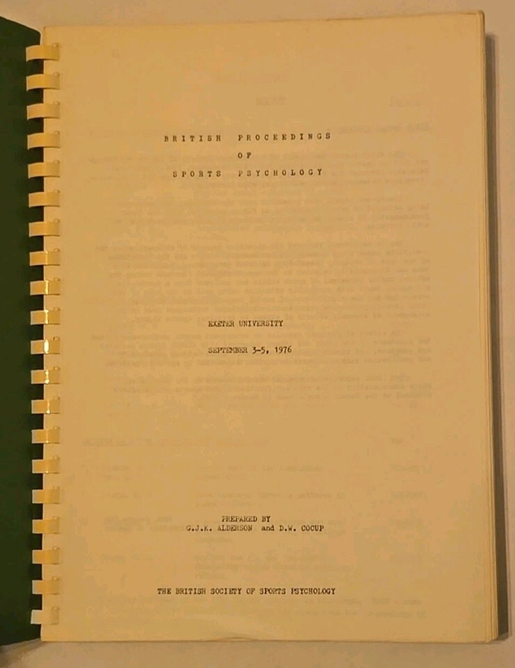 Delve into the fascinating world of sports psychology with the rare British Proceedings of Sports Psychology IXth BSSP Congress 1976 Exeter. Edited by G. J. K. Alderson, this collectible volume is a treasure for enthusiasts and scholars alike, offering insights into the scientific exploration of sports psychology.