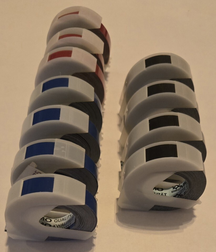 11 Pc Genuine Dymo 3D Plastic Embossing Tape Cartridge 3/8" x 9.8' 9mm Red Blue. Shipped with USPS Ground Advantage.