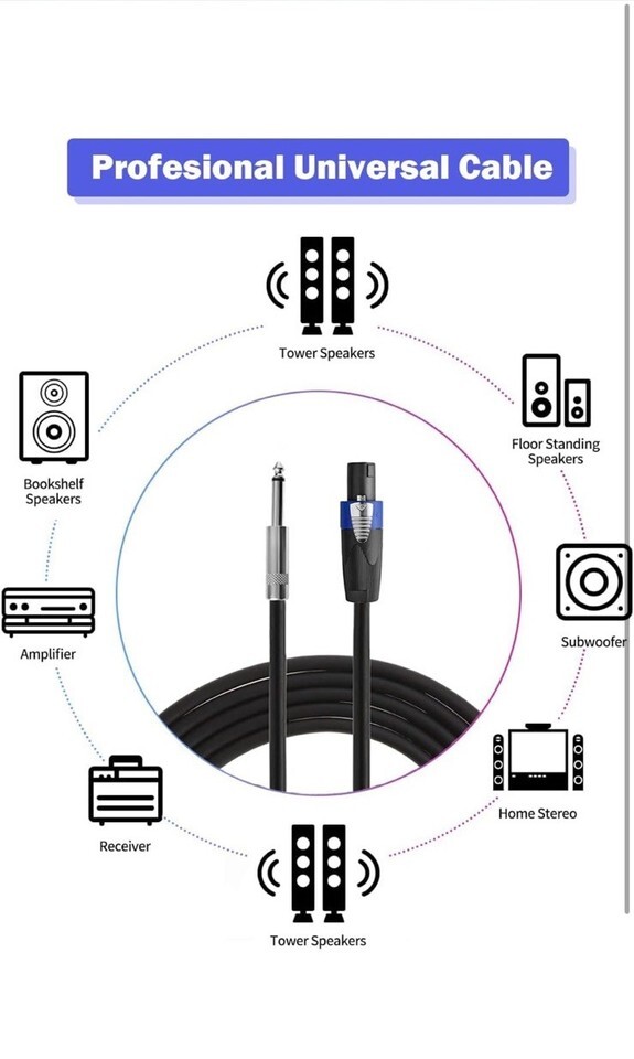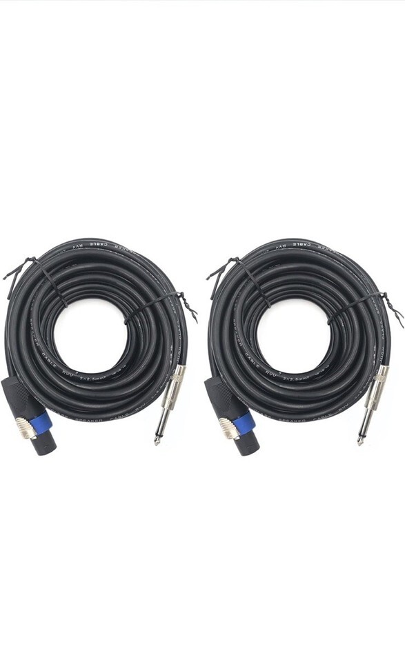 2pack 15 ft Speakon to 1/4" Male Speaker Cables, Professional Audio Amplifier
