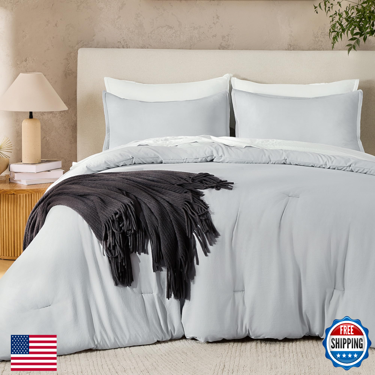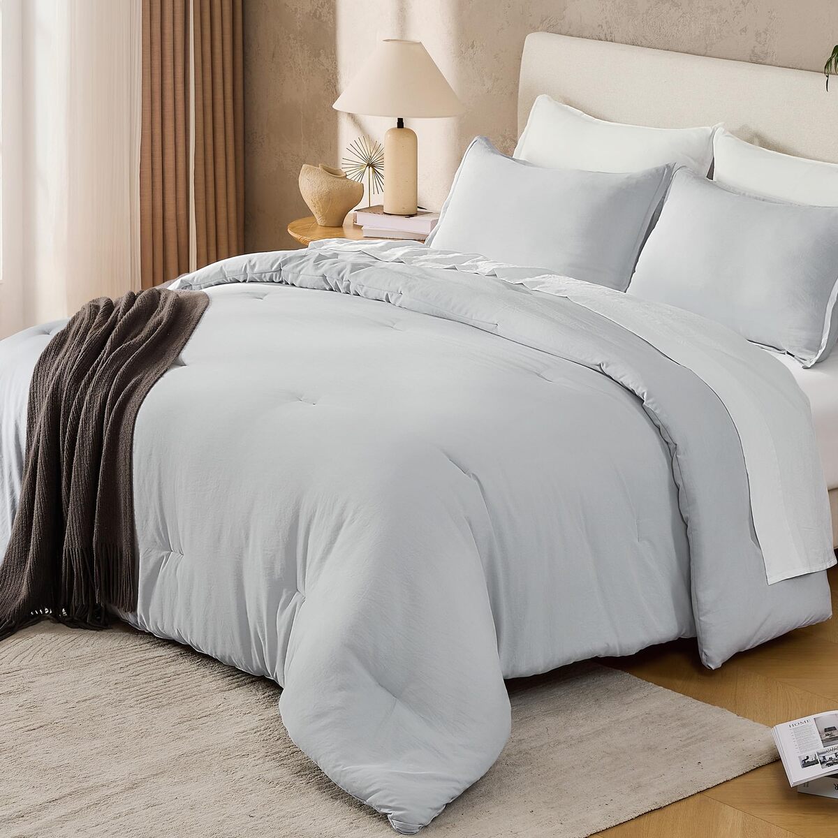 Andency Silver Grey King Comforter Set 3PC Lightweight Fluffy Solid Bedding