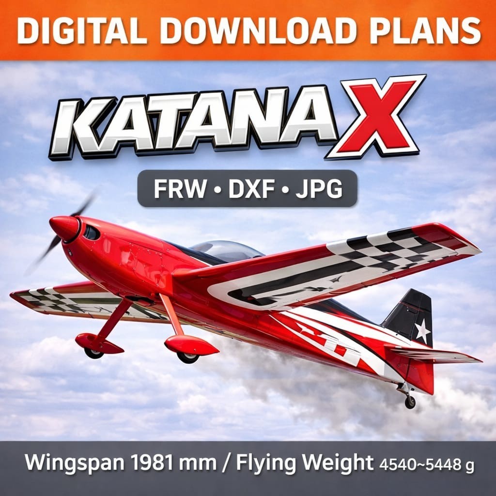 These professional digital plans allow you to construct the legendary KATANA X ? a large-scale RC airplane designed for extreme 3D maneuvers and precision F3A flight.