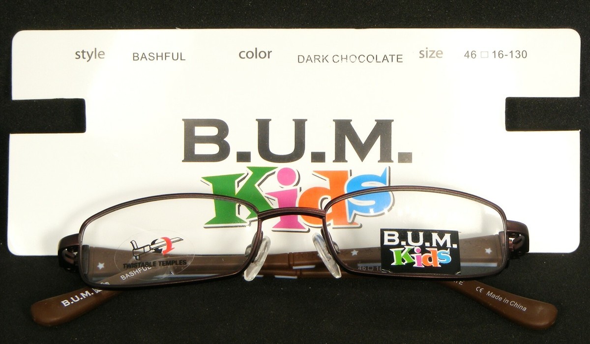 NEW B.U.M. Equipment Kids BASHFUL DARK CHOCOLATE EYEGLASSES GLASSES 46-16-130mm. (B810) Introducing the Bashful glasses from B.U.M. Equipment ? these irresistibly cute frames are designed for irresistibly cute faces! Ideal for kids that need a pair of glasses that can keep up with their busy routine, the slim rectangular frames are lightweight and comfortable, with adjustable plastic nose pads that create a snug fit. The plastic arms feature twistable temples, so stylish young ones can switch between looks to suit their mood. Fun, stylish, and durable, the Bashful frames are designed to see kids through everything from the classroom to the playground. Returns are always FREE for any reason. If you don't like it, simply click "Item no longer needed". Item should be returned within 60 days a