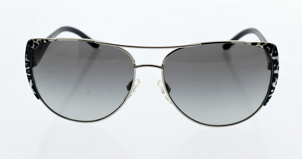MK 1005 105911 Sadie I is a full rim frame for women which is made up of Plastic Metal material. Features of sunglasses are Black Silver color frame with Grey lens of Pilot shape. The logo Michael Kors of is display on the temple.