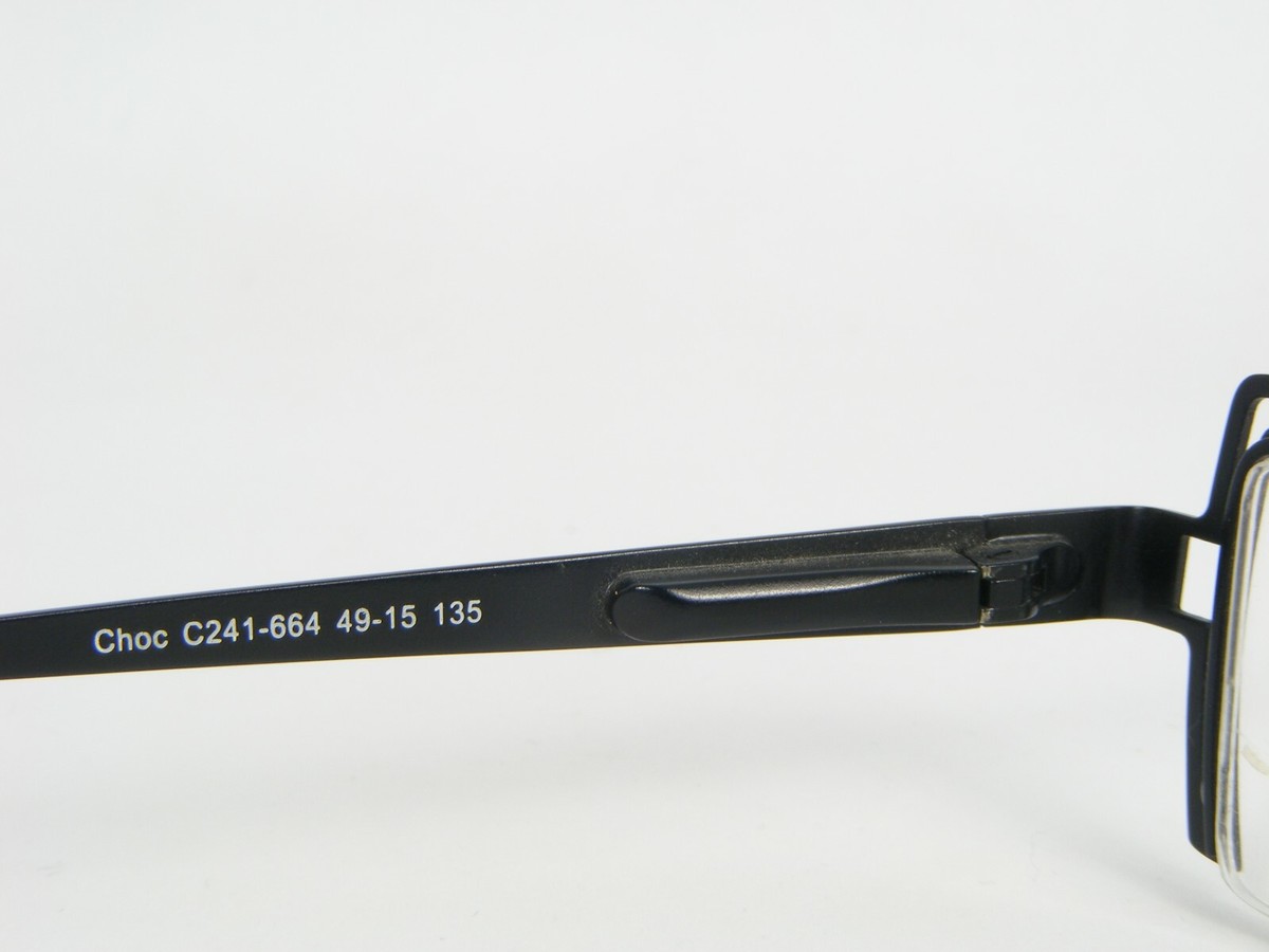 +Choc- C241-664 BLACK EYEGLASSES GLASSES HALF RIM FRAME Choc 49-15-135mm. (F144) Includes: Non-Branded hard case, cloth pouch bag and cleaning cloth. Actual photos of these glasses. This is exactly what you will receive. Style and comfort in everyday use. A pair of glasses is not just an accessory; it provides the first hint of an individual?s personality. The wearer must enjoy a frame and feel that it is completely consistent with his or her look and mindset. A great pair of glasses, with all its detail and complexity must above all be an extension of the individual. Returns are always FREE for any reason. If you don't like it, simply click "Item no longer needed". Item should be returned within 60 days as UNUSED in original packaging. If you have any questions please feel free to cont