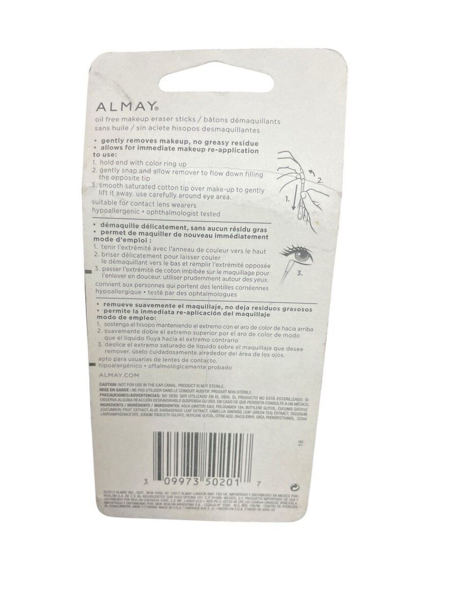 Almay Oil-Free Makeup Eraser Sticks, 24 sticks one pack. Packaging has some creasing and plastic had some yellow residue. Item is still seal. This is for one item only.