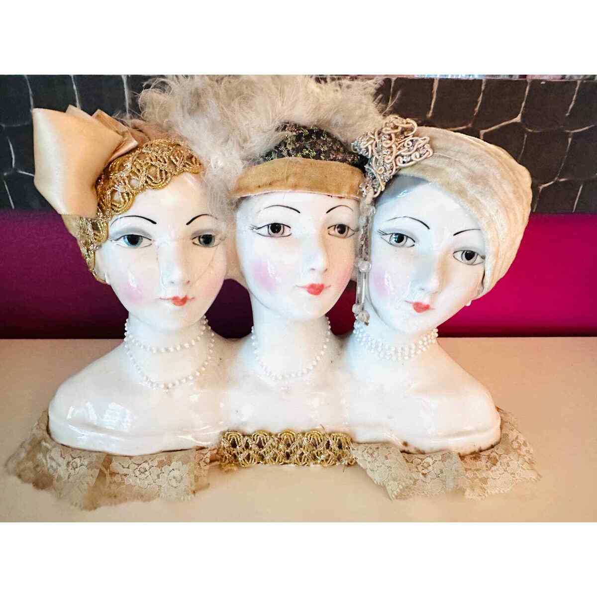 RETRO Vintage Art Deco Ingles Valencia 3 Ladies Bust Hand Painted