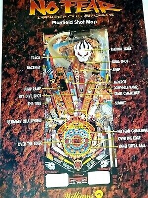 Original promotional large wall poster (not a flyer) for the Williams No Fear Dangerous Sports pinball machine. Size is 36.25" X 24.25". Perfect for framing. Makes great wall art for the man cave or a unique gift idea. Minor wrinkles and storage wear only.