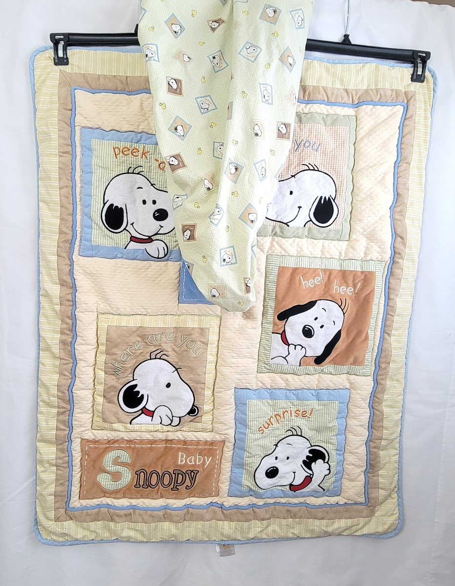 Vtg Baby Snoopy Peek a Boo Crib Quilt + and similar items