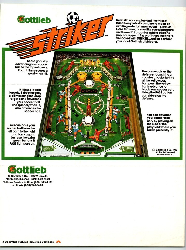 Striker Pinball Machine FLYER Original 1982 Soccer Sports Retro Game 8.5" x 11"