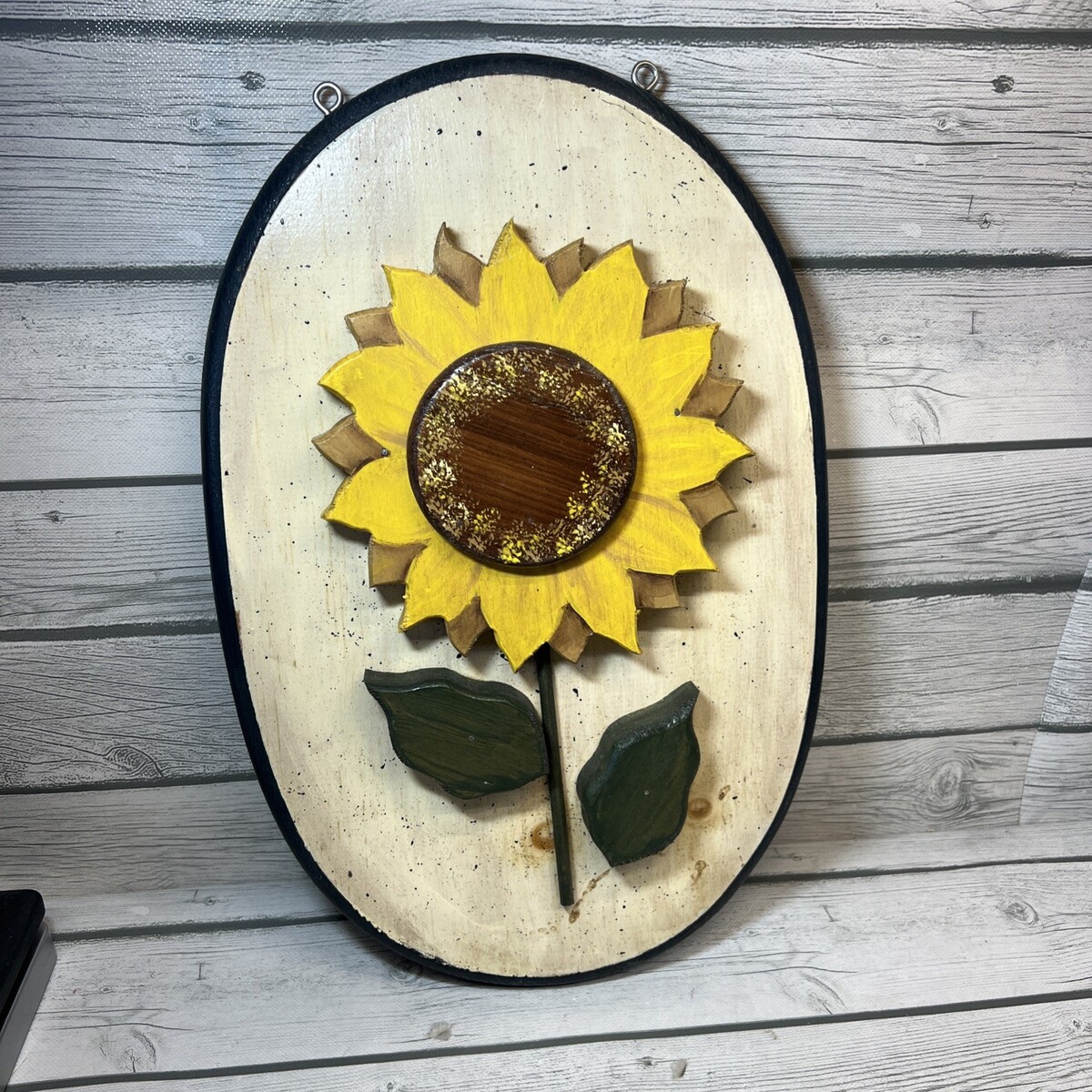 Sun Flowers Hand Carved - Painted Wooden Wall Cottage 80’s Garden Vintage 16x11