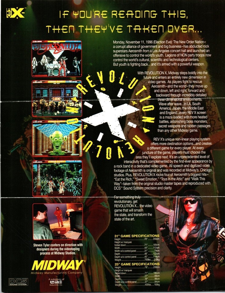 Aerosmith Revolution X Video Arcade Game Flyer 1994 Original Art 8.5" x 11" Rock