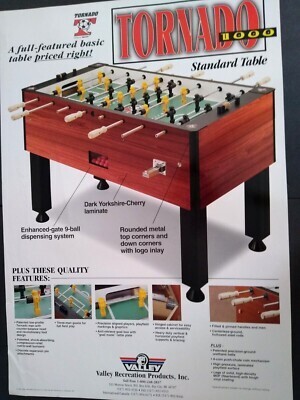 Tornado Wall Poster 1998 Foosball Soccer Table Game 27" X 19" Has TEARS