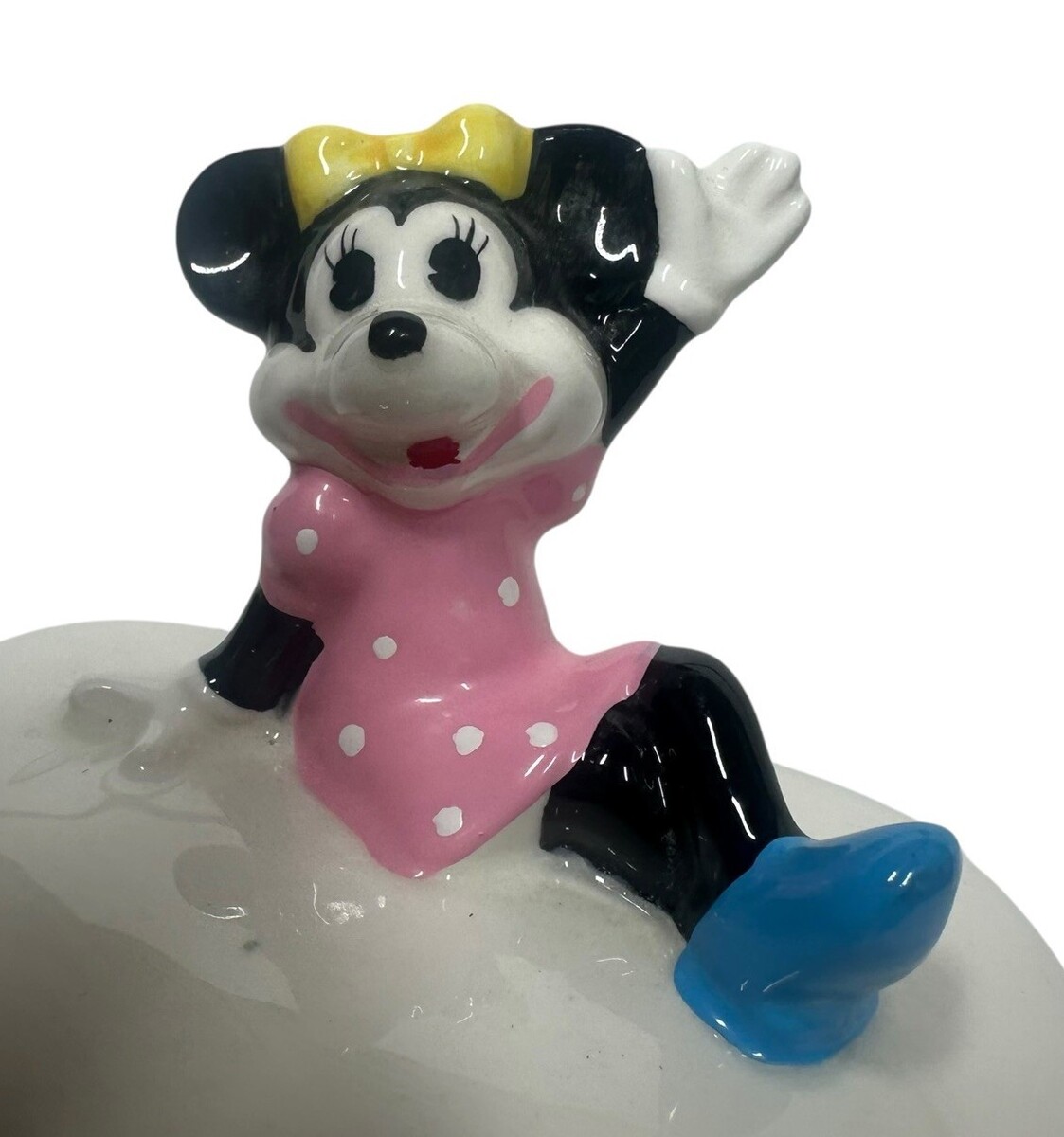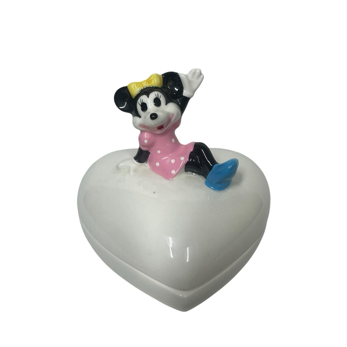 Vtg Minnie Mouse Figurine 4" Trinket Jewelry Ring Heart Box Disney Japan 1970s