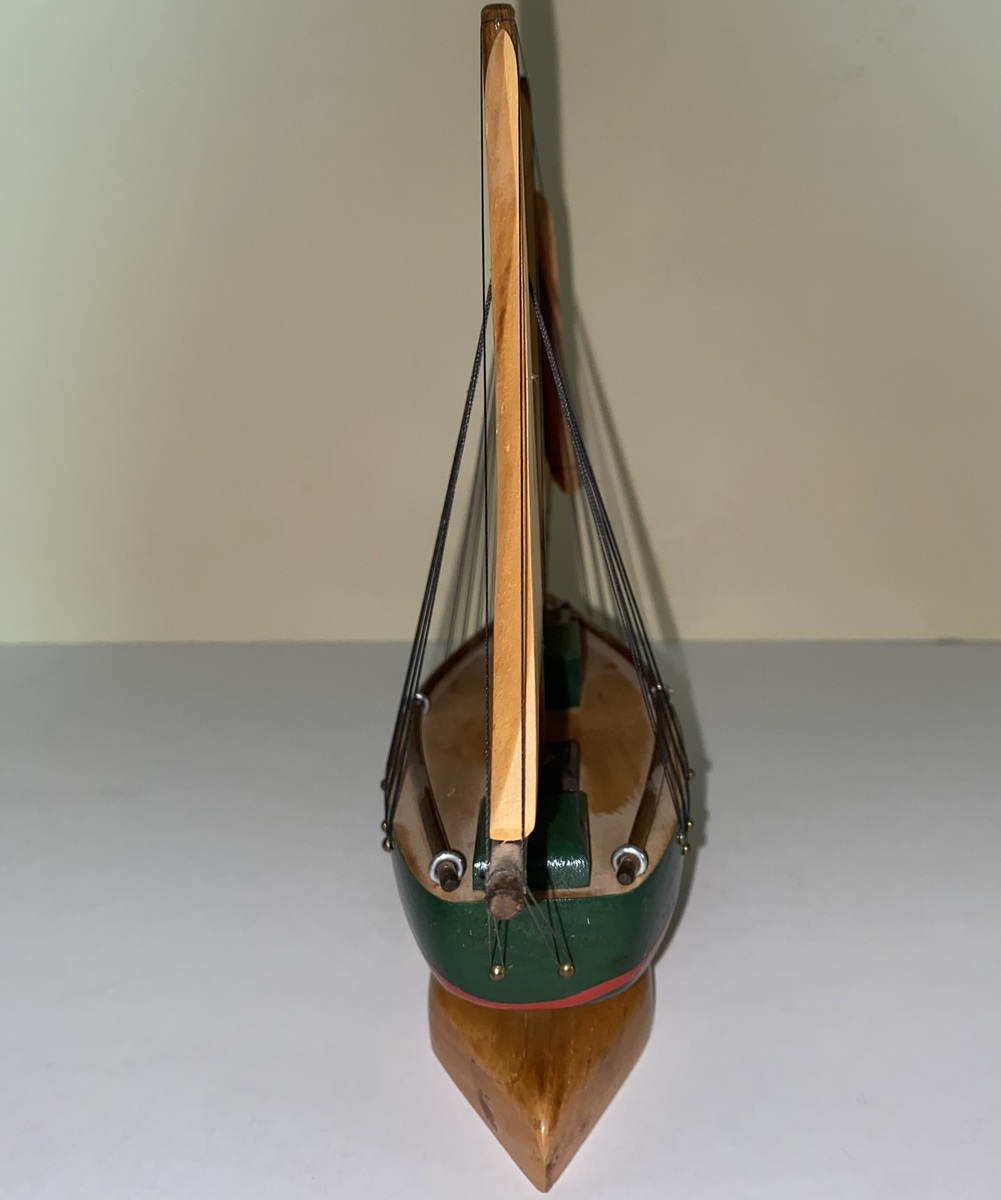 Here we have a beautiful handmade wooden Sailboat that would be a great accent piece for a nautical themed room or simply a lovely display piece for a mantle or shelf. We don't have an exact date but we're thinking it's from the 1960's because we've seen others similar to it from the same era.