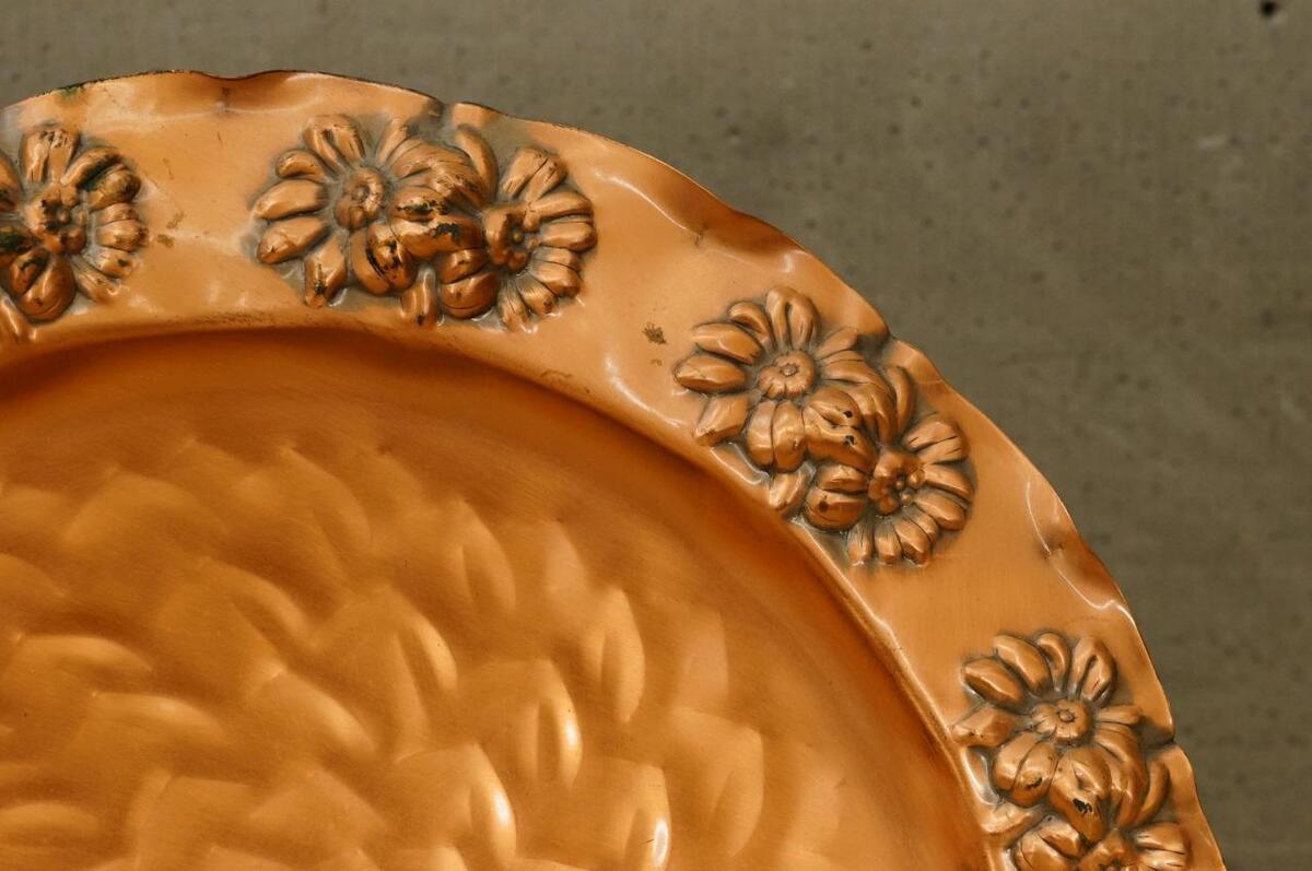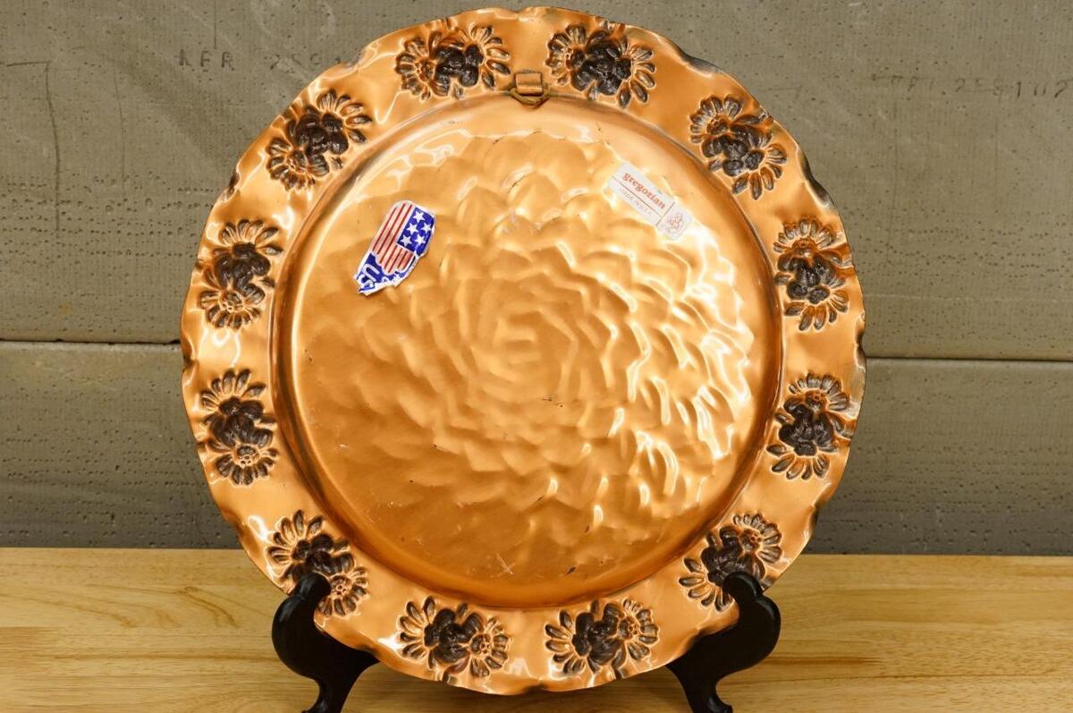 Vintage GREGORIAN Solid Copper Daisy Hammered Pattern Wall Hanging Plate 13" across. Ready to hang.