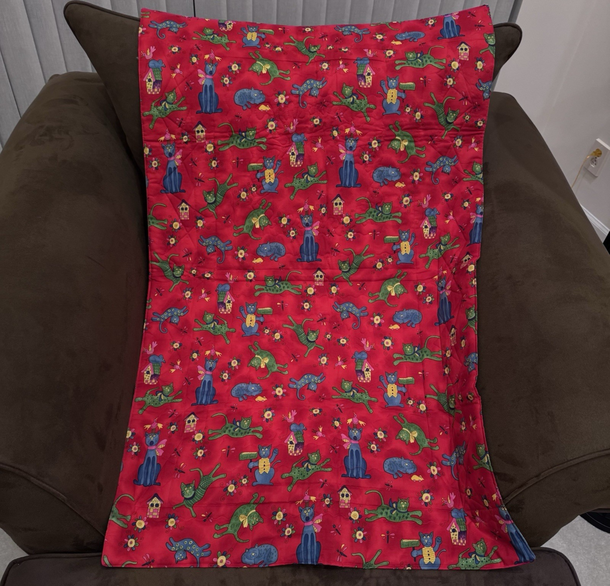 As it is reversible, the other side has a fun red Crazy Cats pattern.