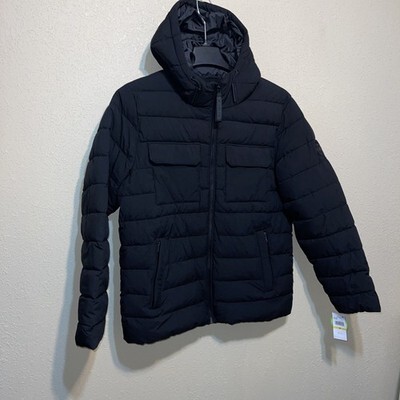 Michael Kors Men's Black Quilted Hooded Jacket Coat Size L NEW