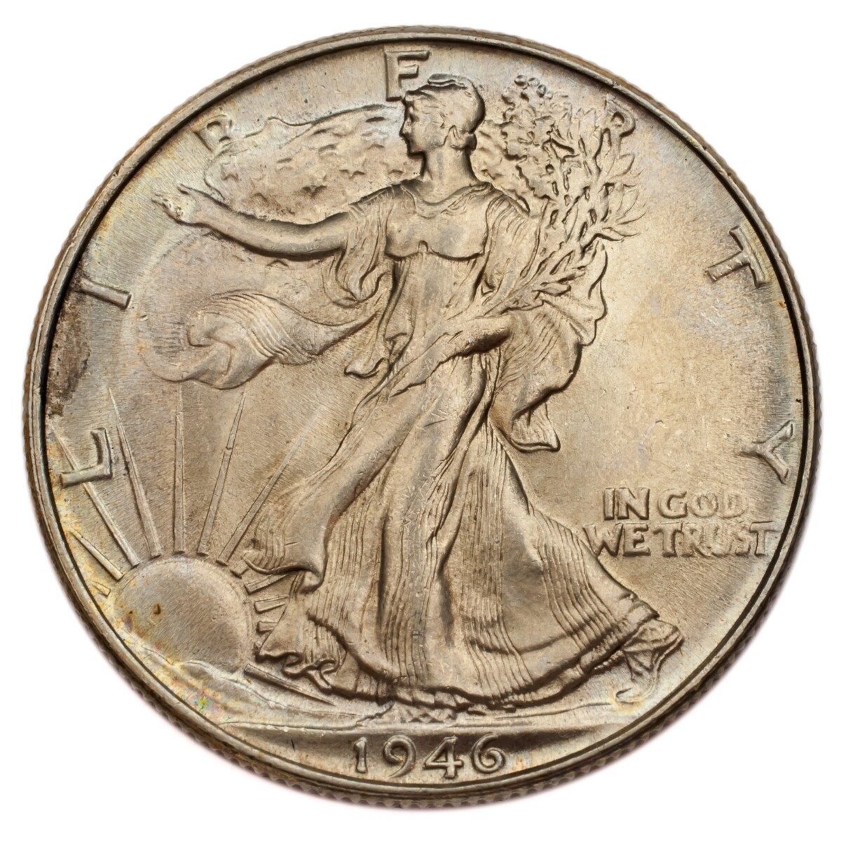 Moneda De 50C De Medio Dolar Liberty Walking De Plata De 1946 (Condicion Gem BU)