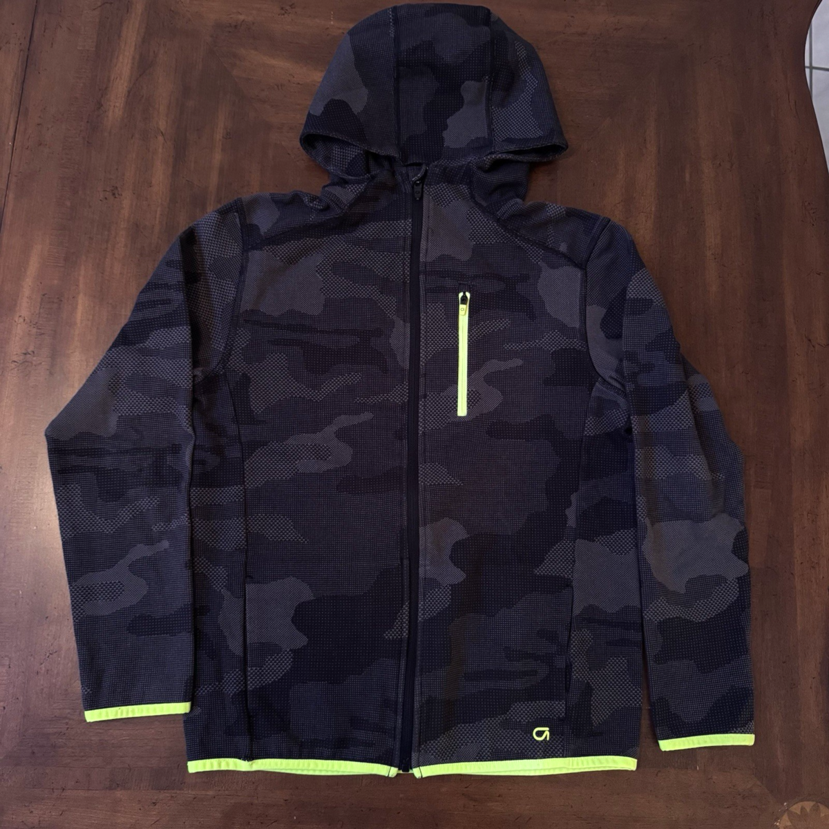 Gap Fit Dry - Boys Grey Camouflage Zip Up Jacket with Hoodie Size XXL (14-16) - Yellow Neon Details