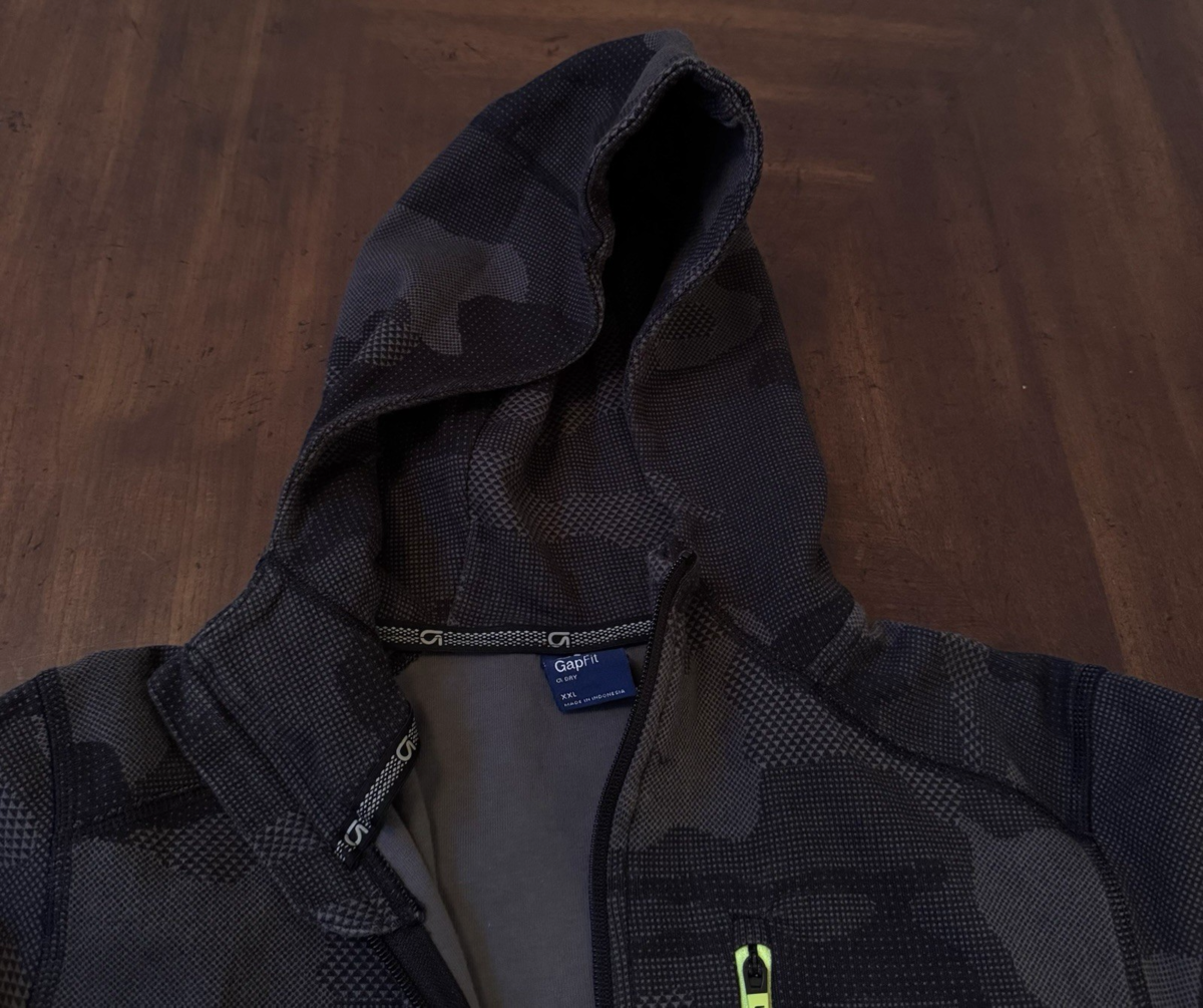 Gap Fit Dry - Boys Grey Camouflage Zip Up Jacket with Hoodie Size XXL (14-16)