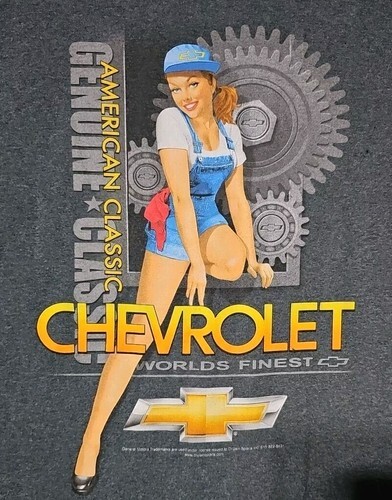 UP FOR SALE: Gildan Chevrolet Genuine American Classic Car Guy Gray Spell Out Pin-Up Graphic 2XL Mens