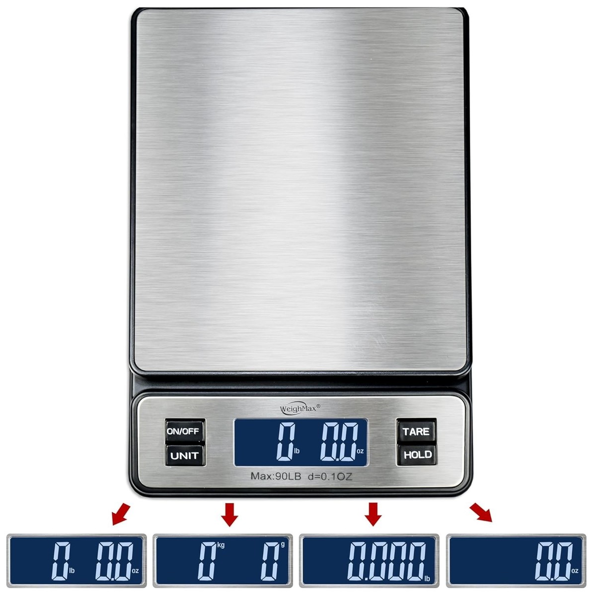 Weighs up to 90 lbs with precise measurement graduation down to 0.1 oz.