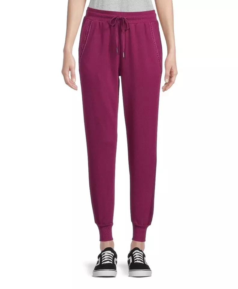 Time And Tru Women's Terry Trim Joggers Dark Raspberry Size XL