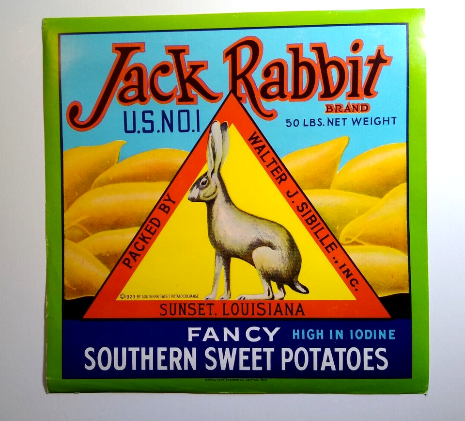 Jack Rabbit 1923 Sweet Potatoes Crate Label and similar items