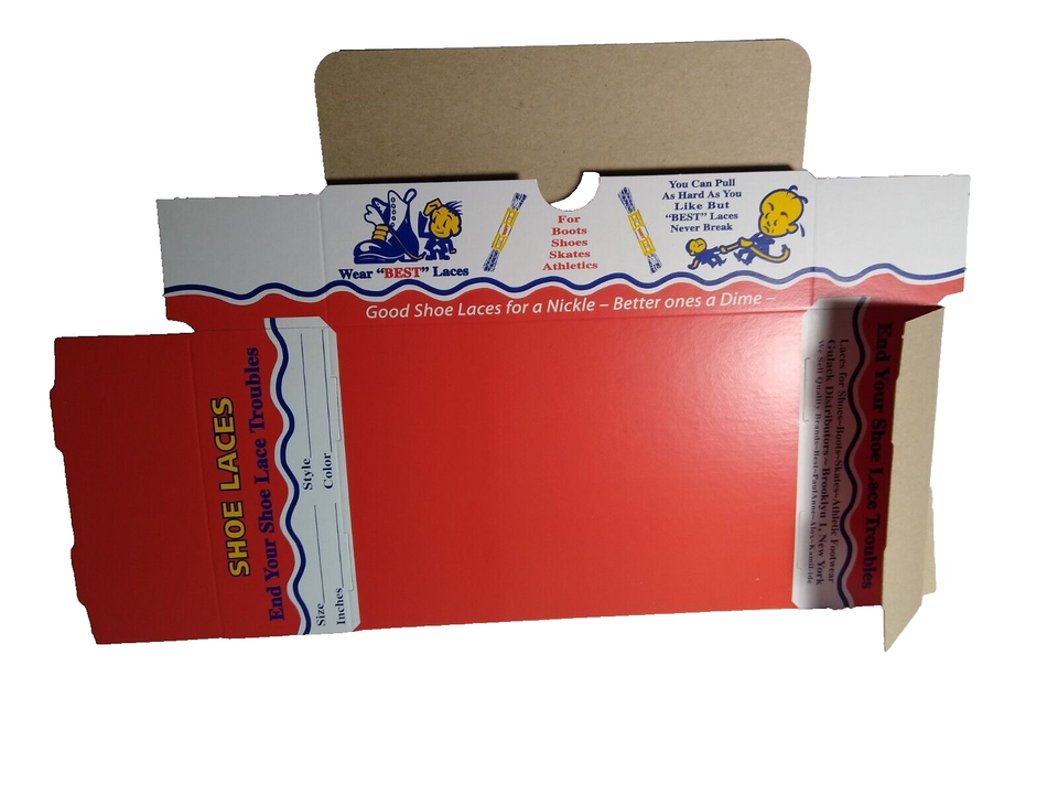 Best Shoe Laces Vintage Product Graphic Box 1950's Brooklyn New York NOS Retro