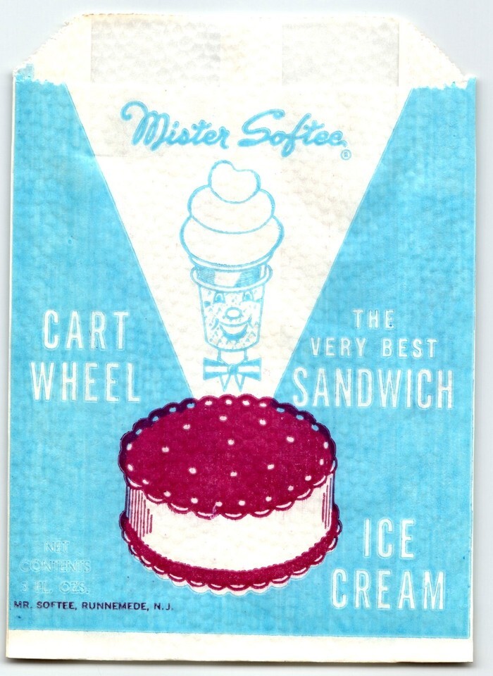 Mister Softee Ice Cream Sandwich Bag Wrapper Vintage Dairy Original Cart Wheel