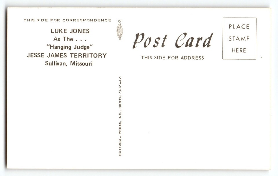 Jesse James Territory Postcard Western Cowboys Sullivan Missouri Hanging Judge