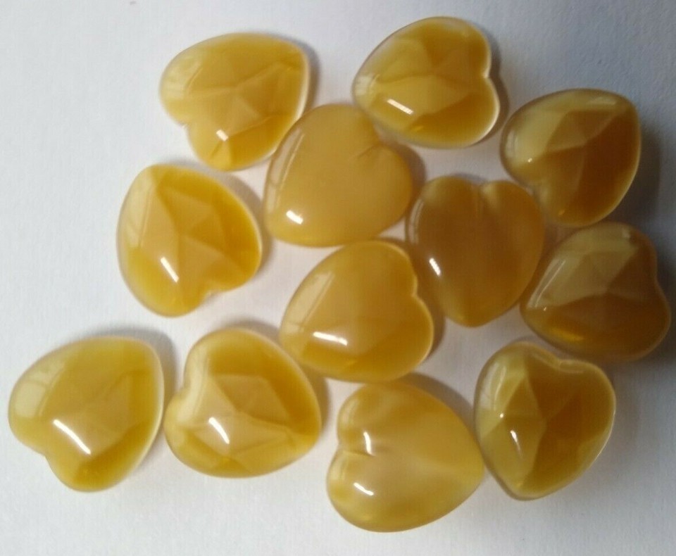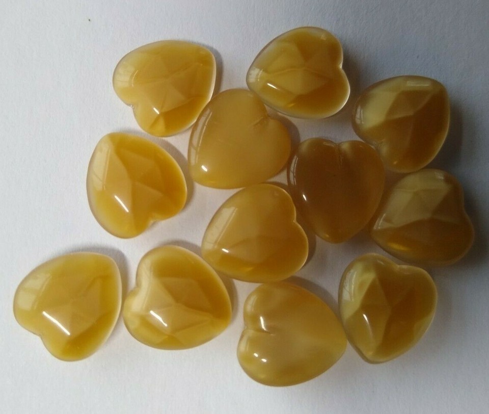 12 Heart Shaped Tan Translucent Glass Cabochons 12mm Vintage New Old Stock 1950s