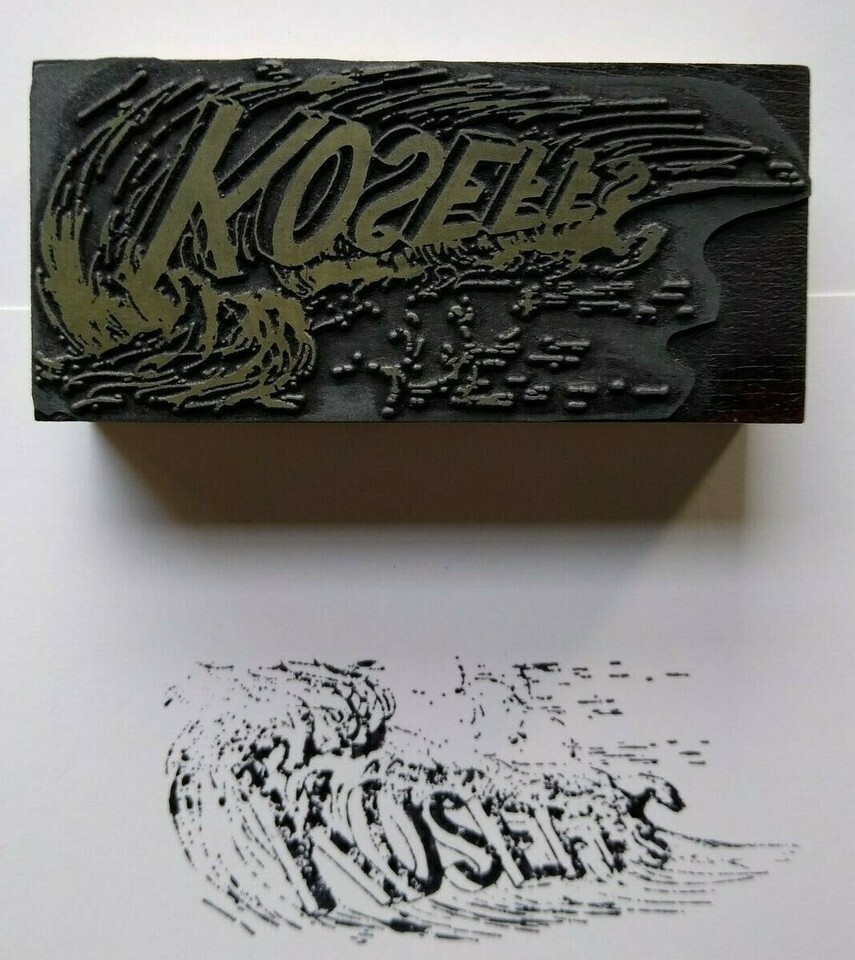 Koseff's Surf Shop original vintage printers block stamp made of metal and wood. I have tested and photo also shows a ink stamp impression I made. Size is 3.5" x 1.25" approximate. Good used condition with some writing and ink stamping on back side. This was found in the Atlantic City, New Jersey area and most are from old businesses in Atlantic City, Atlantic County, or the southern NJ area.