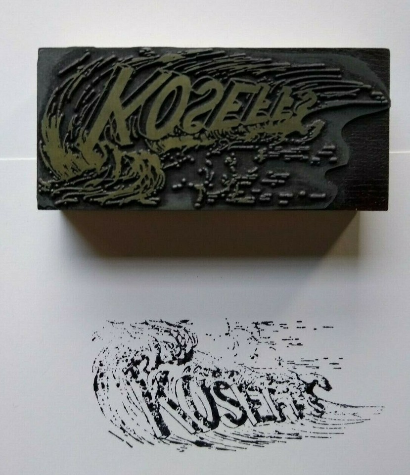 Koseff's Surf Shop Printers Block Ink Stamp Letter Press Ocean Waves Surfing