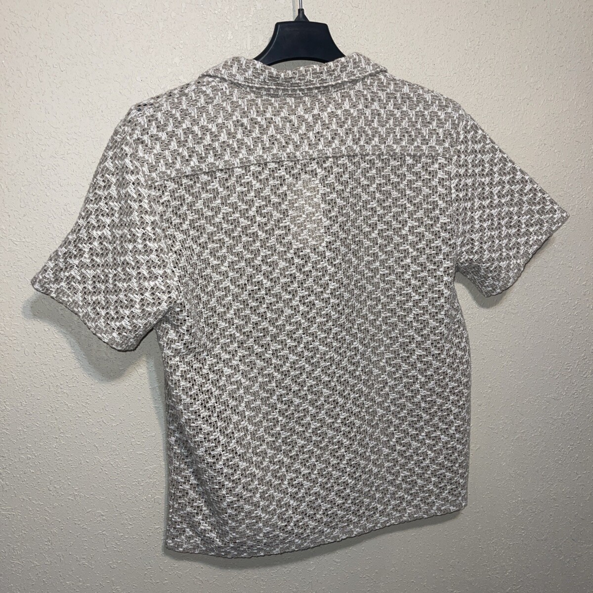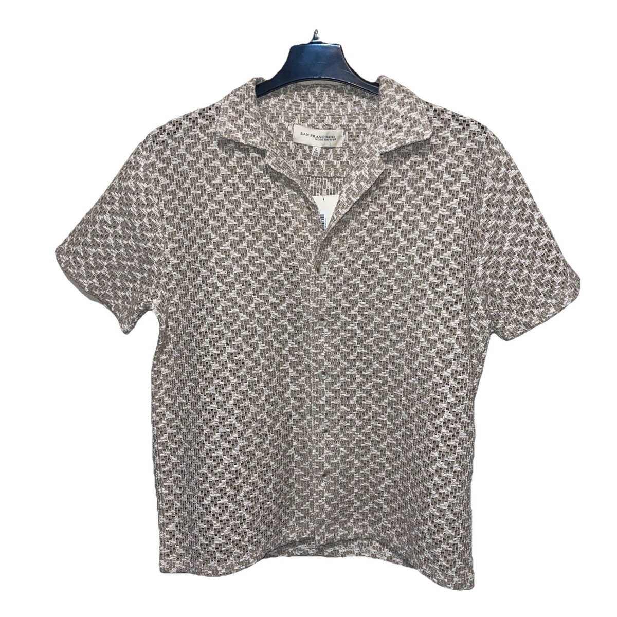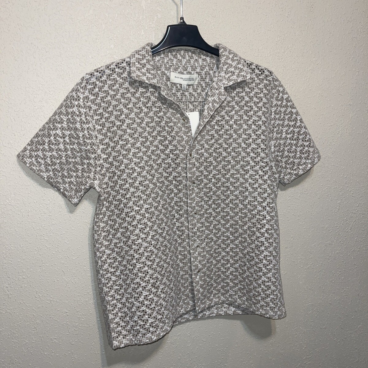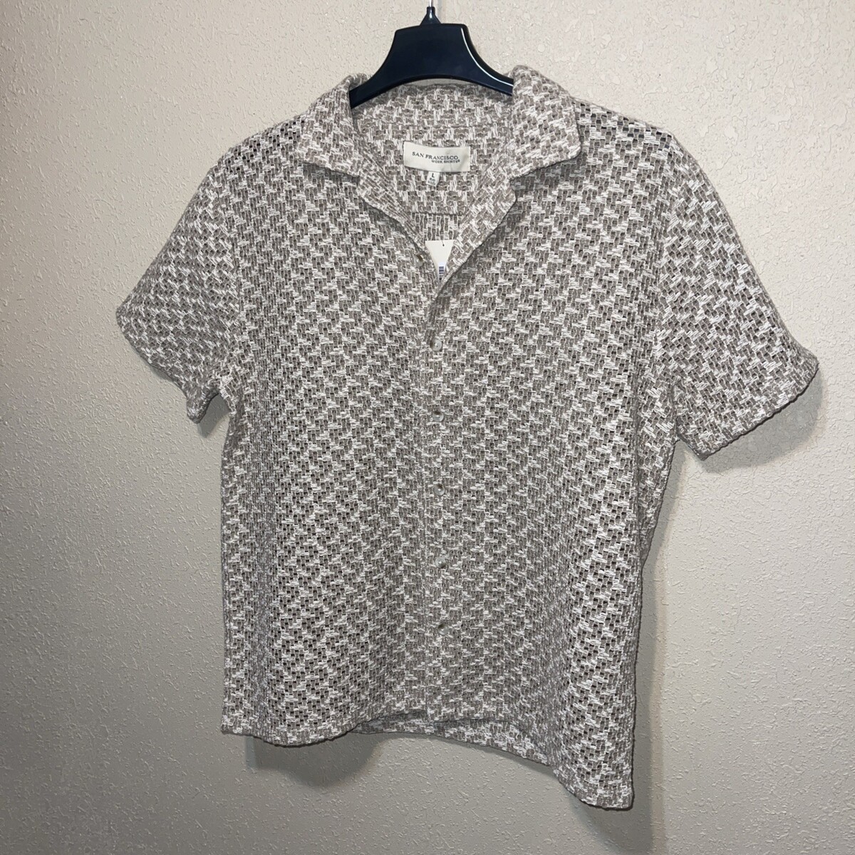 San Francisco Work Shirts Mens Crochet Lace Button Down Beige SZ M NEW