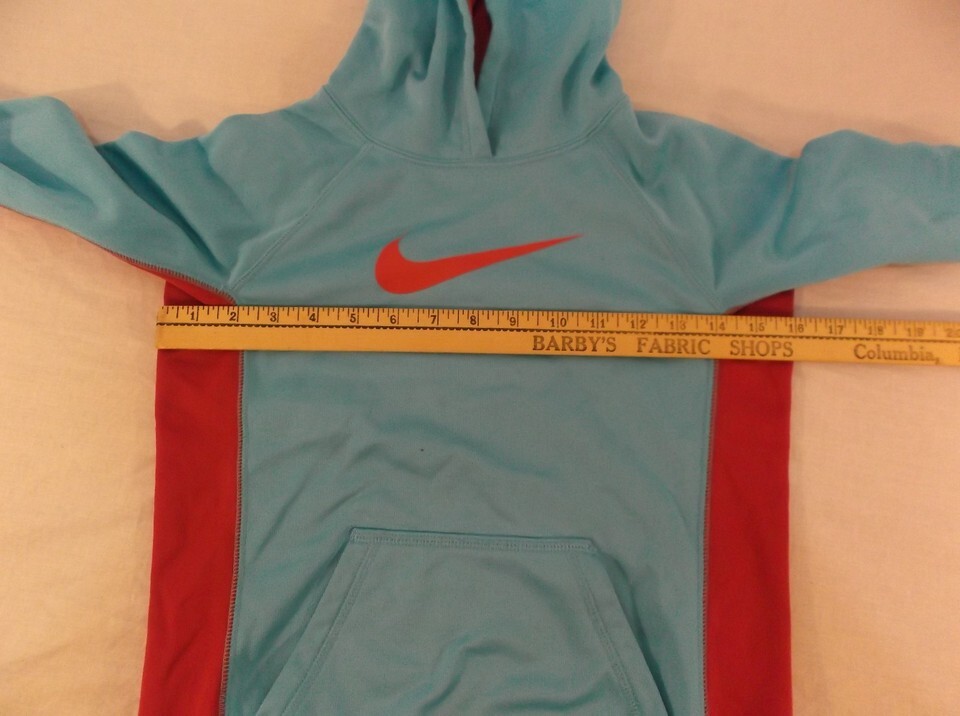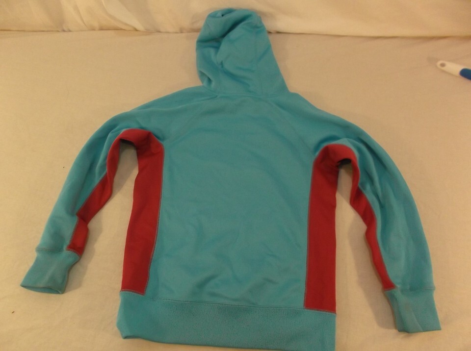 NIKE THERMA-FIT BLUE AND RED LIGHTWEIGHT GIRLS YOUTH HOODIE PULLOVER SWEATER M