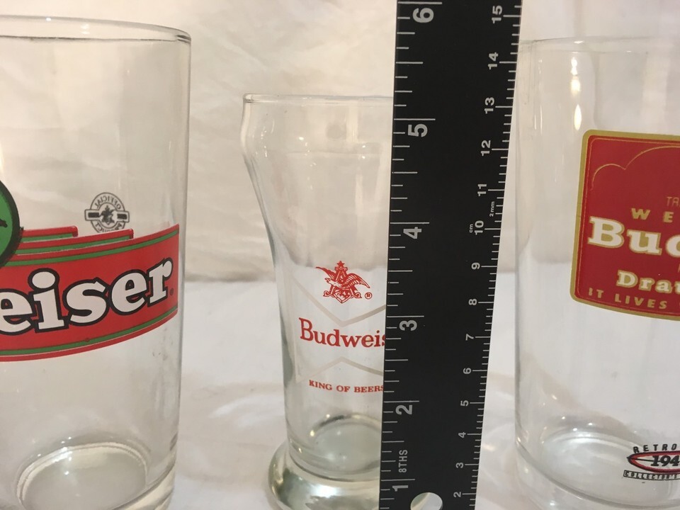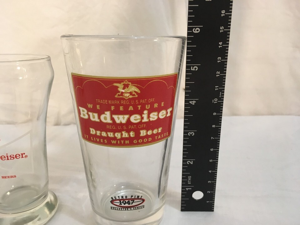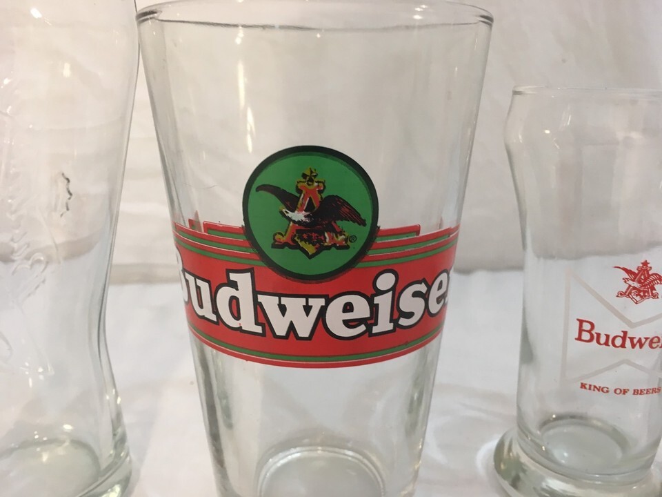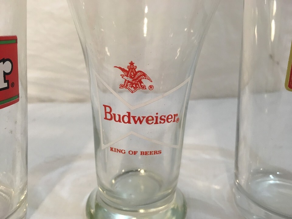 Vintage Anheuser Busch Budweiser Draught Highball Bar Beer Cups Set Glasses