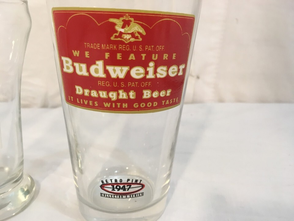 ITEM : Vintage Anheuser Busch Budweiser Draught Highball Bar Beer Cups Set Glasses