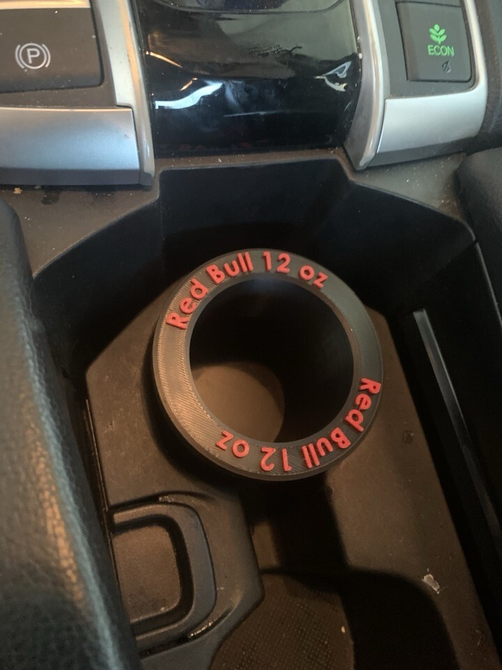 The Red Bull 12 oz can cup holder adapter is a convenient accessory for car and truck owners looking to securely hold their favorite energy drink cans in place while on the road. Made in the United States, this adapter features a vibrant red color that adds a pop of color to your vehicle's interior. Designed specifically for a 12 oz can size, this cup holder adapter is a must-have for Red Bull enthusiasts on the go. Can possibly make other versions just let me know.