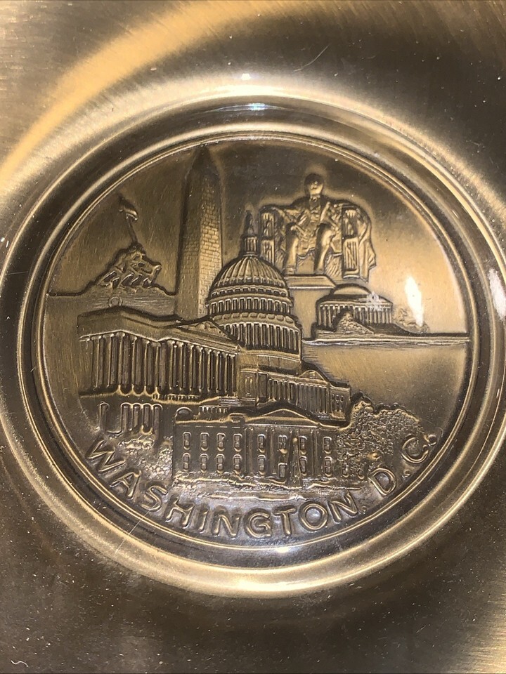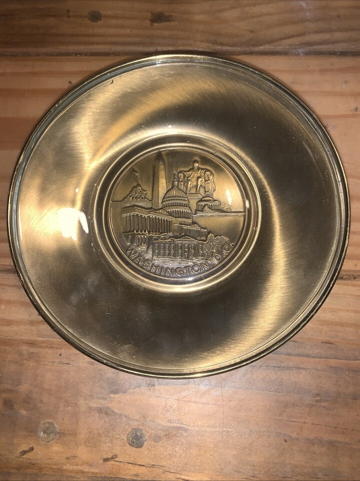 Washington D.C. Souvenir Brass & Glass Decorative 6" Plate Coin Trinket Dish DC
