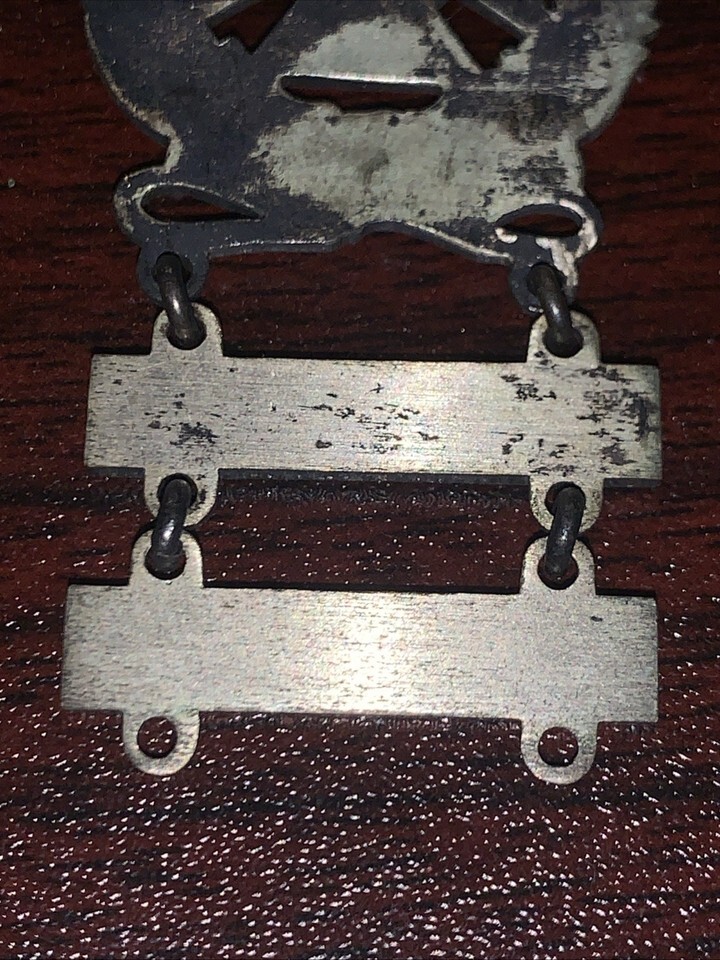 The Vintage World War Two Era Rifle Sharpshooter Wreath Award Sterling Silver Pin is a unique and original collectible item from the United States during the era of World War II. This pin showcases a military theme, specifically related to militaria, and would make a valuable addition to any collection of original period items from this time. The sterling silver construction adds a touch of quality and prestige to this prestigious award, making it a sought-after item for collectors and history enthusiasts alike.