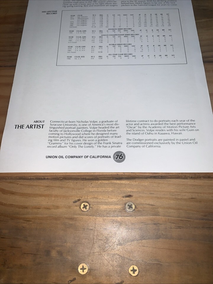 VTG 1982 Los Angeles Dodgers Union 76 Oil Print: Bob Welch