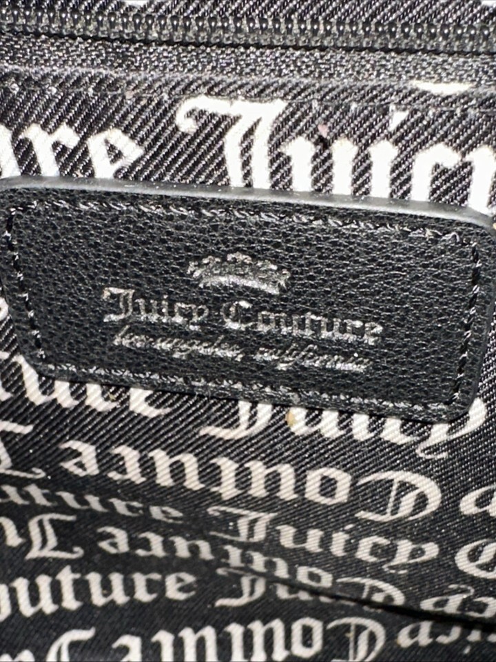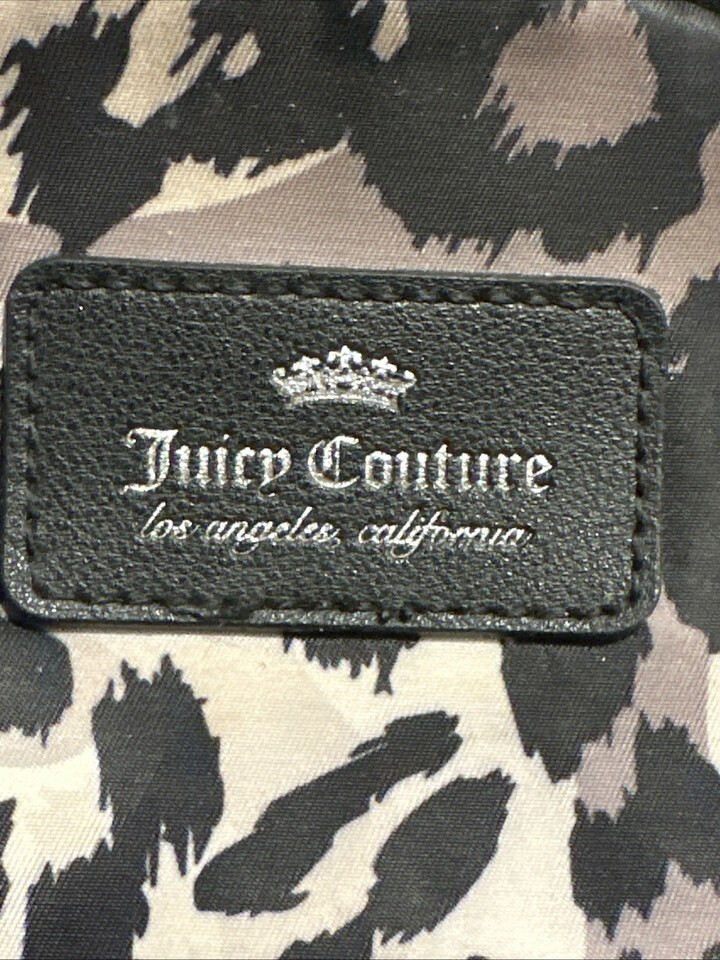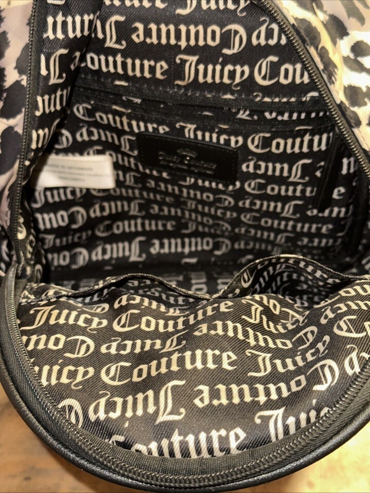 The Juicy Couture bag is a stylish backpack designed for women. It features a black exterior with a beige lining, crafted from luxurious silk material. This fashion-forward handbag adds a touch of sophistication to any outfit, making it a must-have accessory for the modern woman on the go. Perfect for carrying essentials in style, this bag is a versatile piece that can elevate any wardrobe.