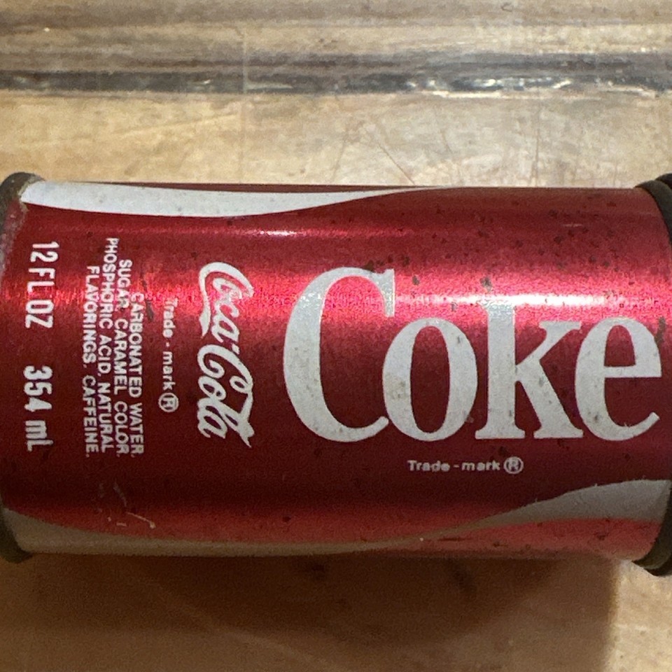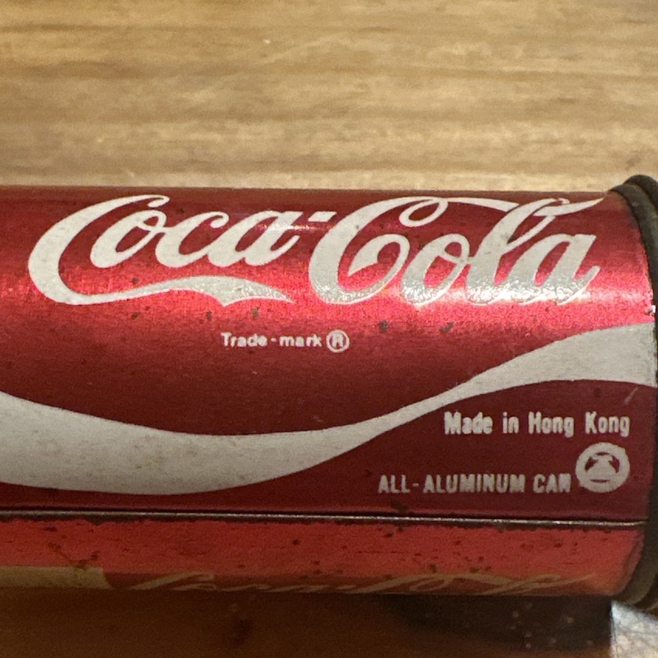 The Coca-Cola Mini Steel Can is a unique and collectible advertising item. This original piece features the iconic Coca-Cola brand and vibrant red color associated with the soda theme. With no modifications or warnings, this mini steel can is a fun and functional addition to any Coca-Cola enthusiast's collection or workspace.