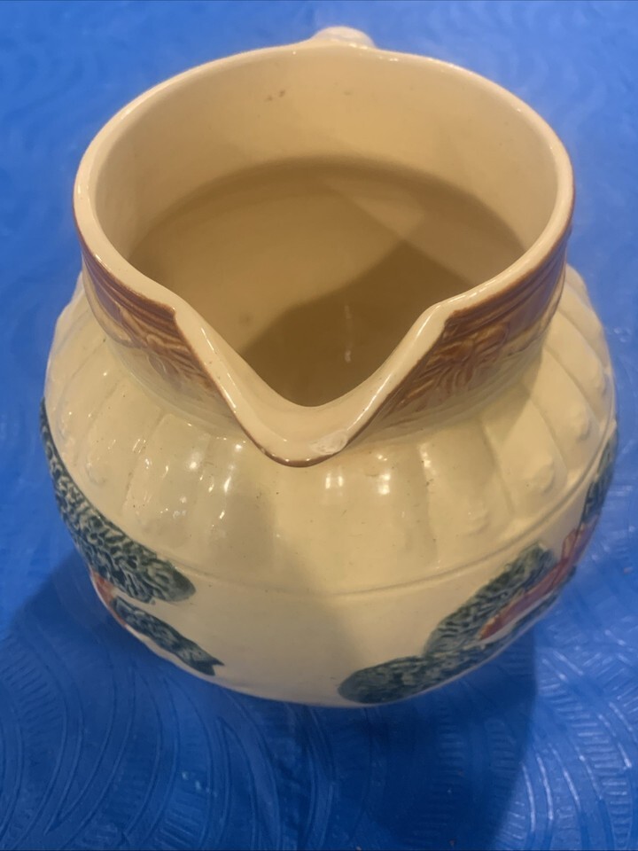 EARLY ROSEVILLE PITCHER RAISED LANDSCAPE POTTERY UNSIGNED PITCHER COLLECTIBLE