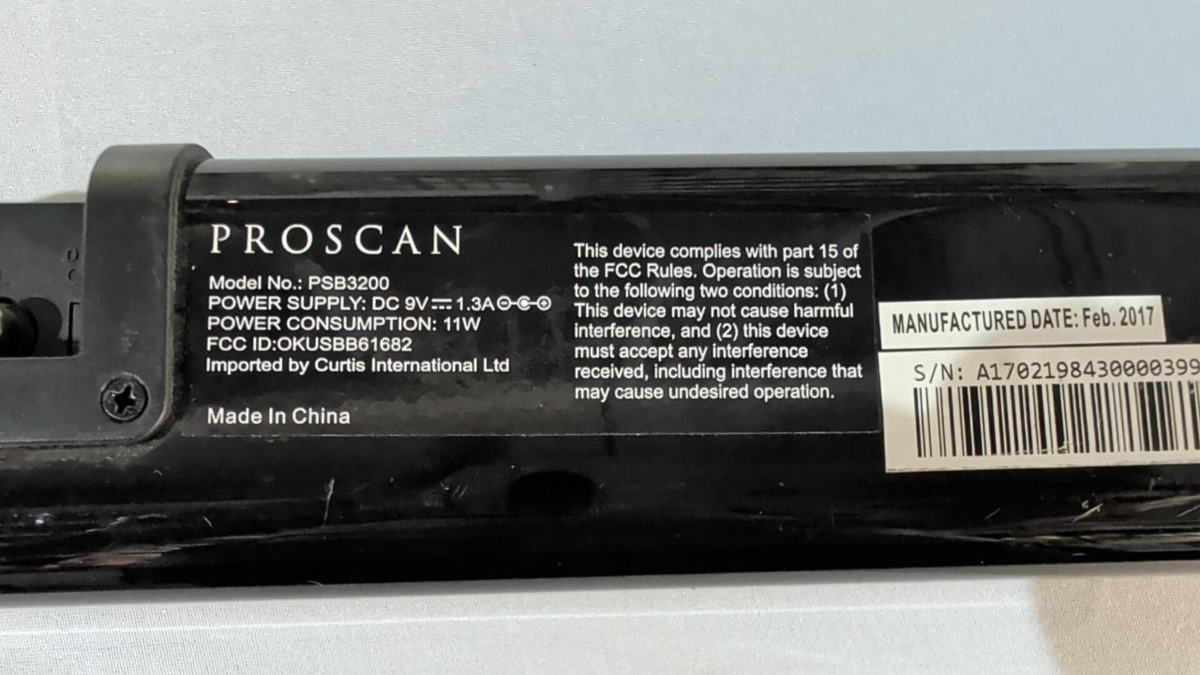 Item includes: Please note: This item includes 1x Proscan PSB3200 Soundbar Only ? As Pictured. No AC/DC power adapter, remote control, AUX cable, or other accessories are included.