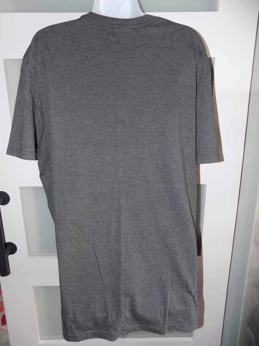 The District Very Important Tee in gray is a classic men's graphic t-shirt featuring the Vikings design in size XL. Made from cotton, this regular fit shirt has a crew neck and short sleeves, providing comfort and style for everyday wear. Representing a timeless theme, this District t-shirt is a versatile addition to any wardrobe.