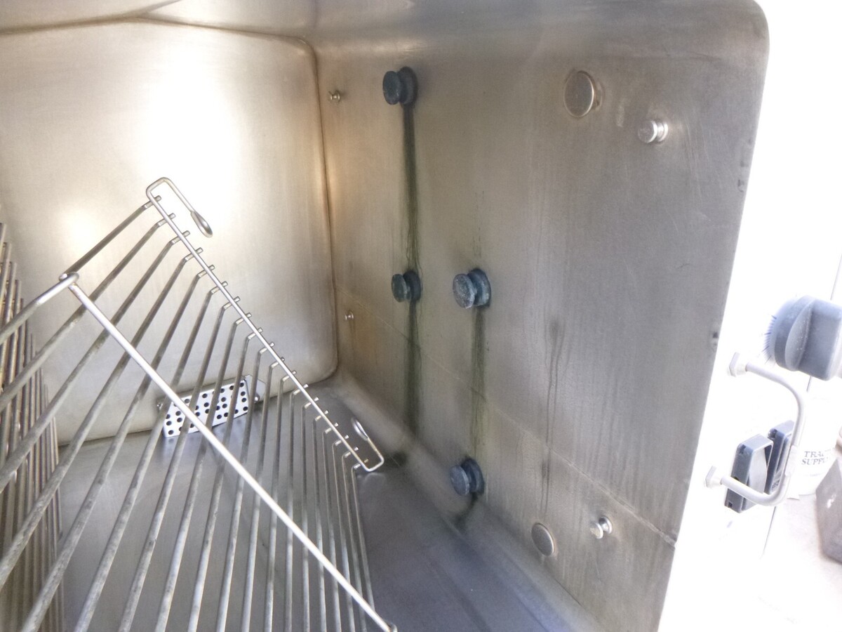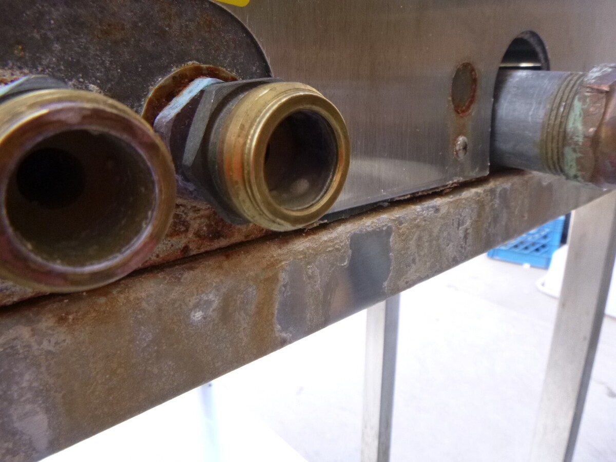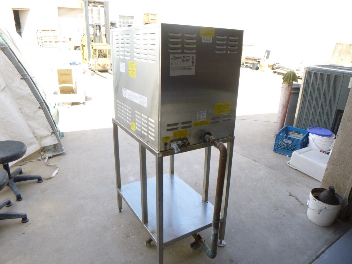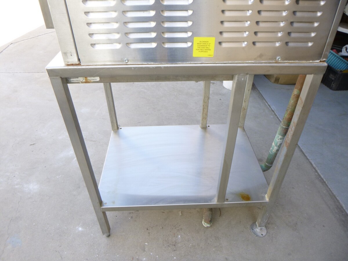 This steamer was surplus from a school district. The information tag show that it powers on with 440/480V 3 phase power, but I don't have 3-phase power, and I can't find the power input for it and so I am not able to test it. I am offering it AS-IS, untested. There are some areas of mineral deposits around the pipe connectors and the stand (see pictures).